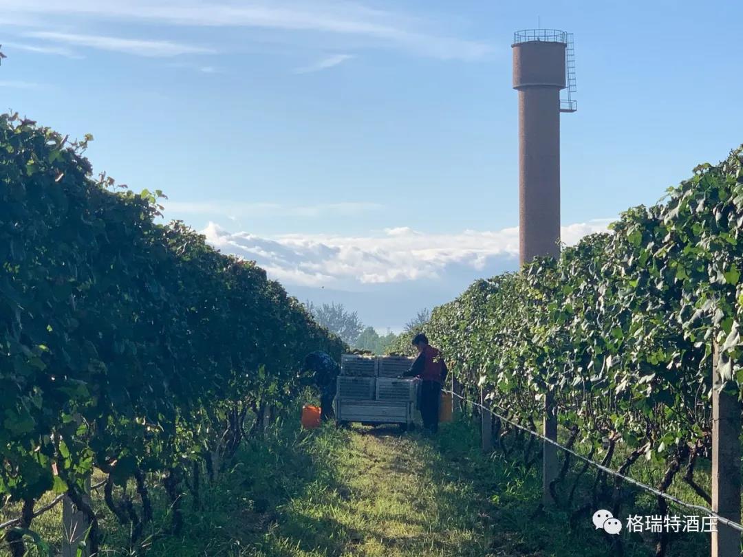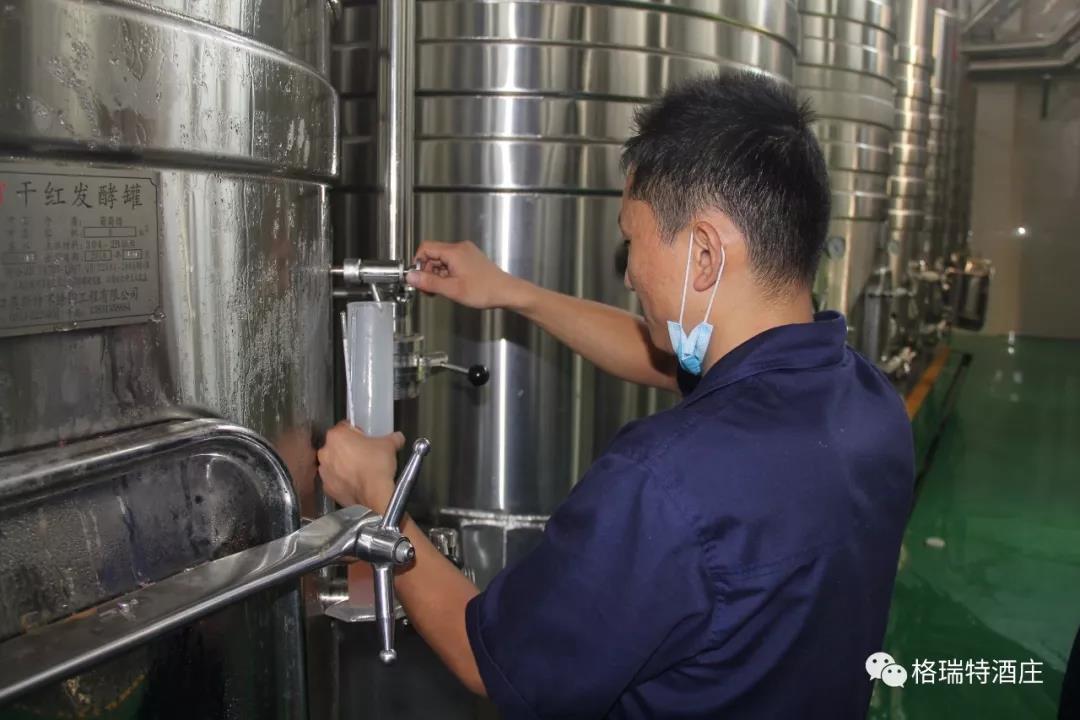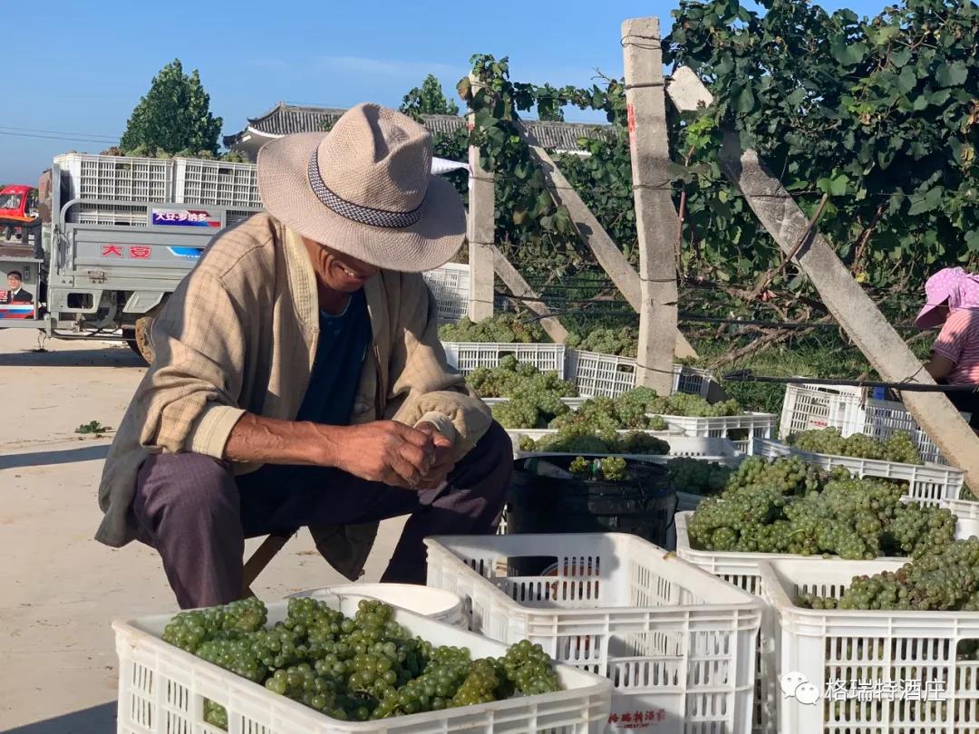 從采摘到進罐發酵,整個過程是即時和快捷的,格瑞特酒莊能做到這一點,得益于酒莊+基地+農戶的產業模式,園區內如此大面積的葡萄種植園全部為酒莊自營,全標準化的園區設計為機械化操作打下了堅實基礎,統一的種植管理規范和操作技術要求以及持續不斷的技術培訓工作,既保證了葡萄的高品質,又踐行了那句土地變綠色工廠,農民轉產業工人的企業愿景。